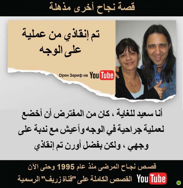 مرحبا بكم استلمنا رسالتكم. بالنسبة للمشكلة المعينة التي وصفتموها فإن بامكان اورن زريف ان يساعد جدا .في اغلب الحالات يحتاج الامر الى علاج واحد فقط. العيادة موجودة في شارع جابوتينسكي 12 ، بني براك، الطابق الاول، غرفة رقم 3. بامكانكم حجز موعد بصورة مستقلة عن طريق الموقع او الإتصال تليفونيا والحجز عن طريق السكرتارية. بامكانكم توجيه اي سؤال اضافي الى اورن لدى قدومكم.
